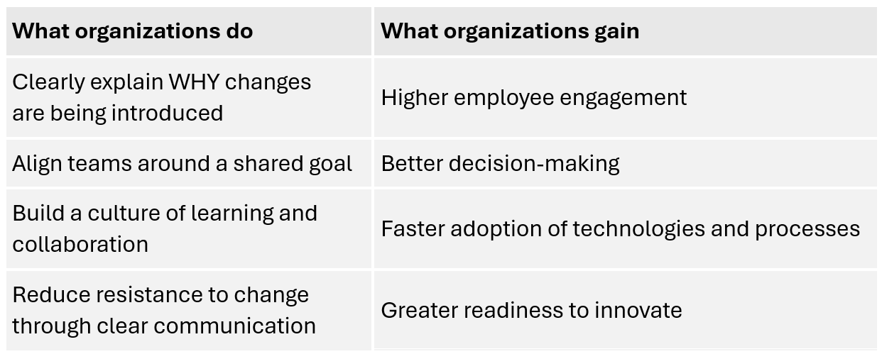 If employees do not understand why something is changing, transformation remains superficial.